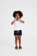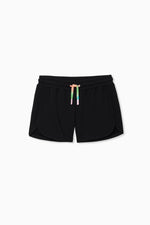 That's right–we brought back these iconic, fan-favorite shorts. Made with a stretchy loop terry material, dolphin hem, and a 'bouncy' light feel, these Black Terry Shorts are perfect for the girl who always likes to be comfy! Plus, they have a super fun rainbow drawstring tie for a pop of color!